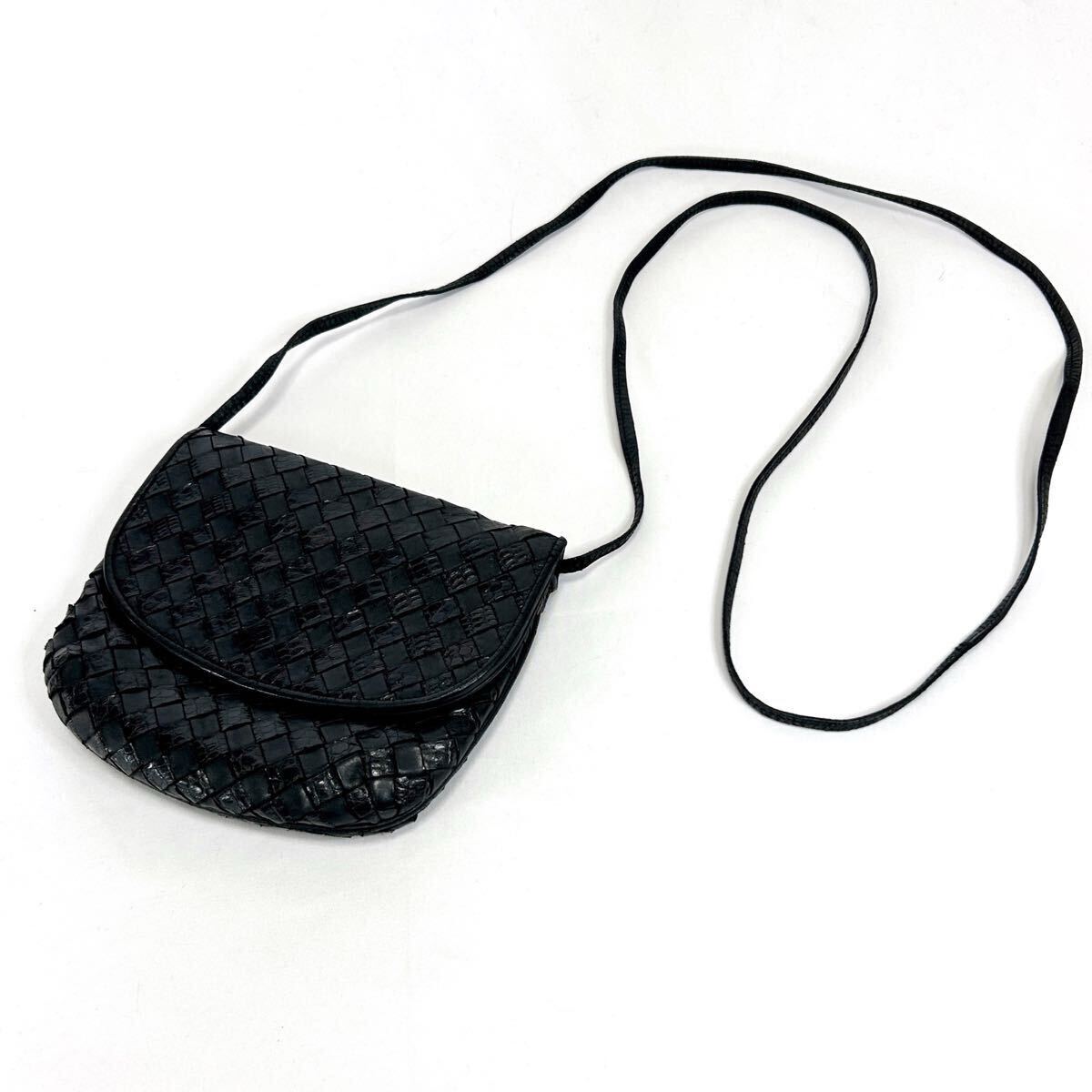 - ボッテガヴェネタ BOTTEGA VENETA ミニショルダーバッグ ブラック 黒 ポシェット 斜め掛け イントレチャートレザー