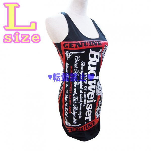 - 【高品質プリント 伸縮可能】バドワイザー ブラック バドガールクルーワンピース 黒 L コスプレ 新品未使用