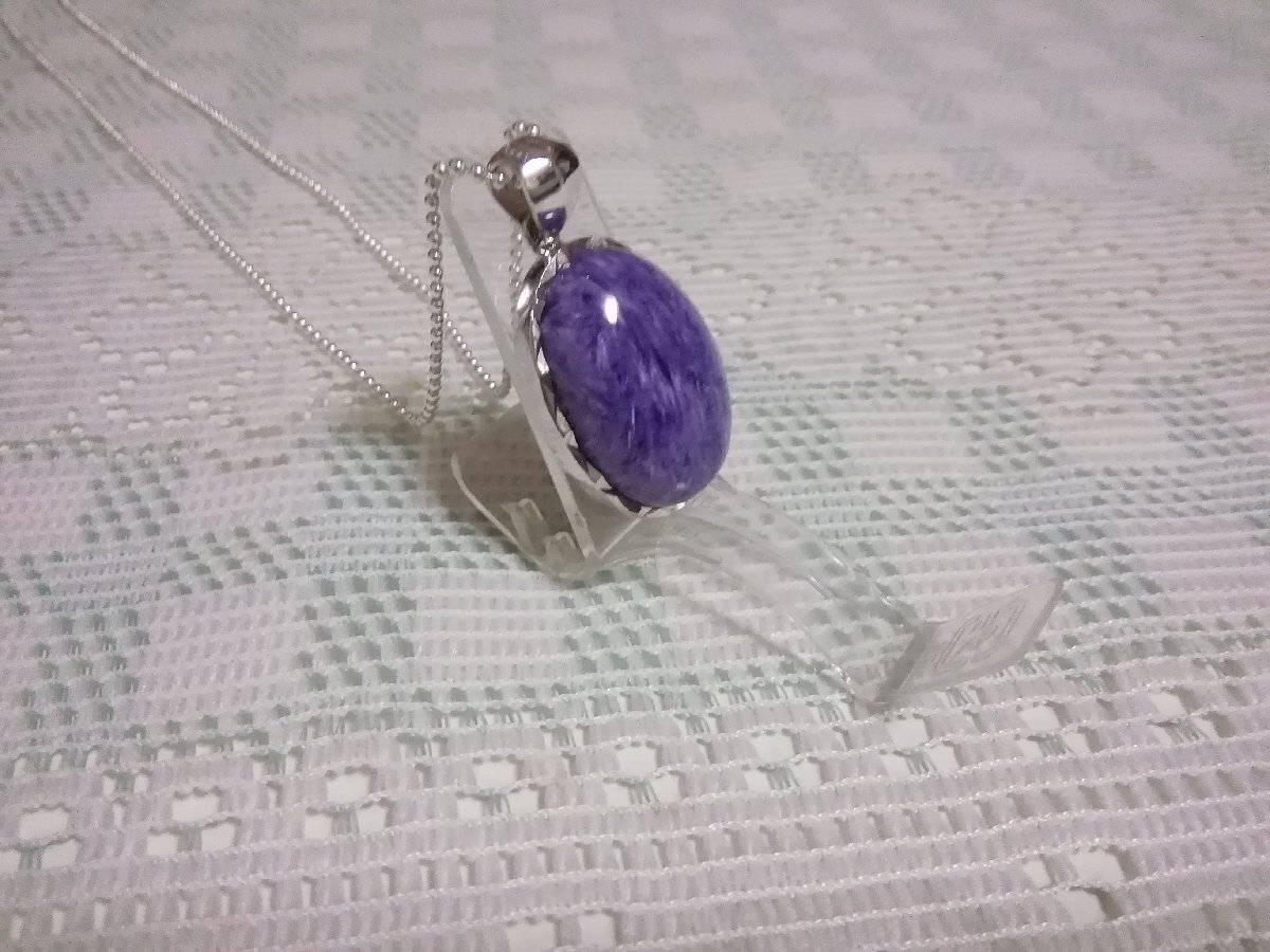 - 紫色のエキゾチックなチャロアイトのオーバル シルバーネックレス NO.2