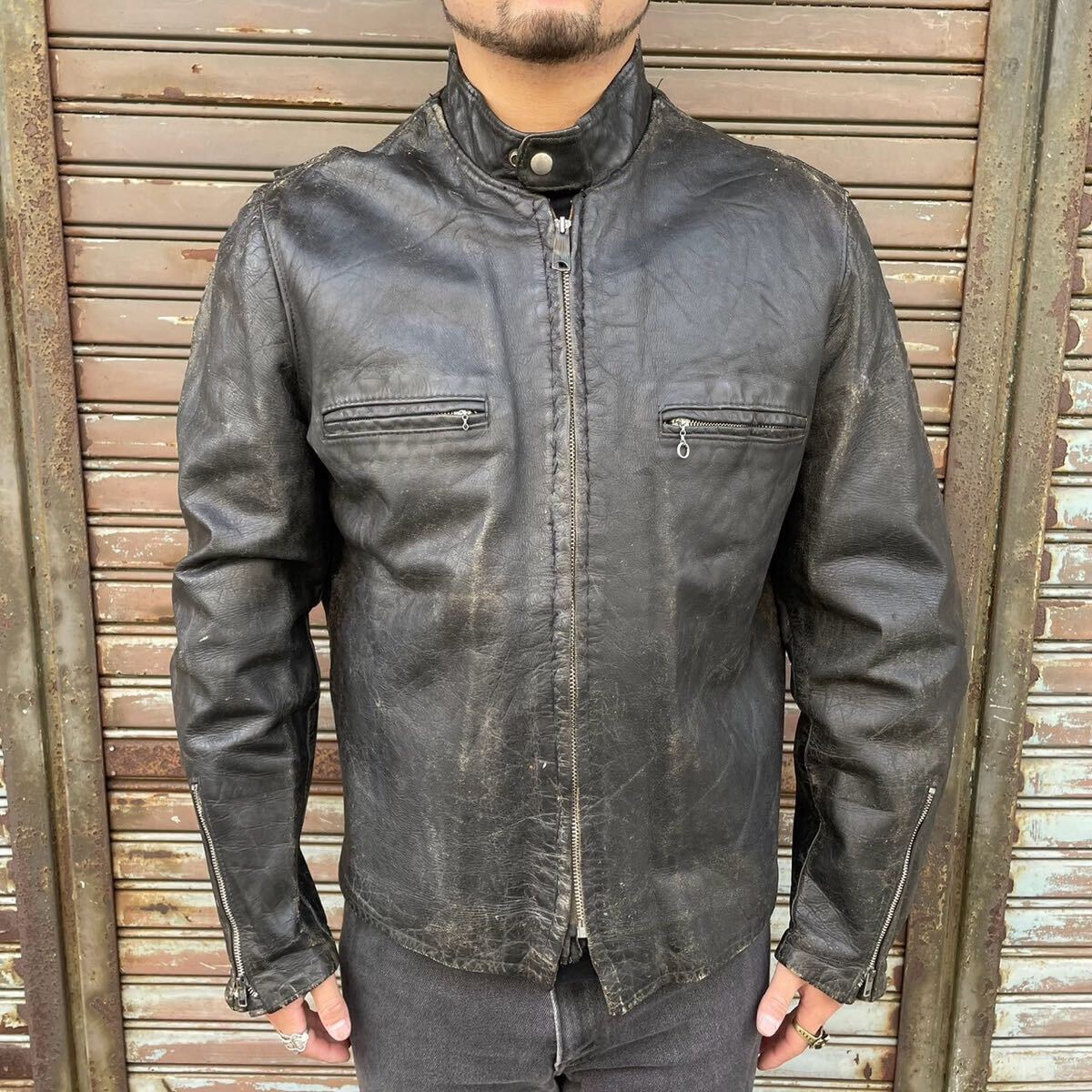 > 60s USA製 シングル ライダースジャケット ヴィンテージ ブラック 44 黒 レザージャケット モーターサイクルジャケット バイカー 50s