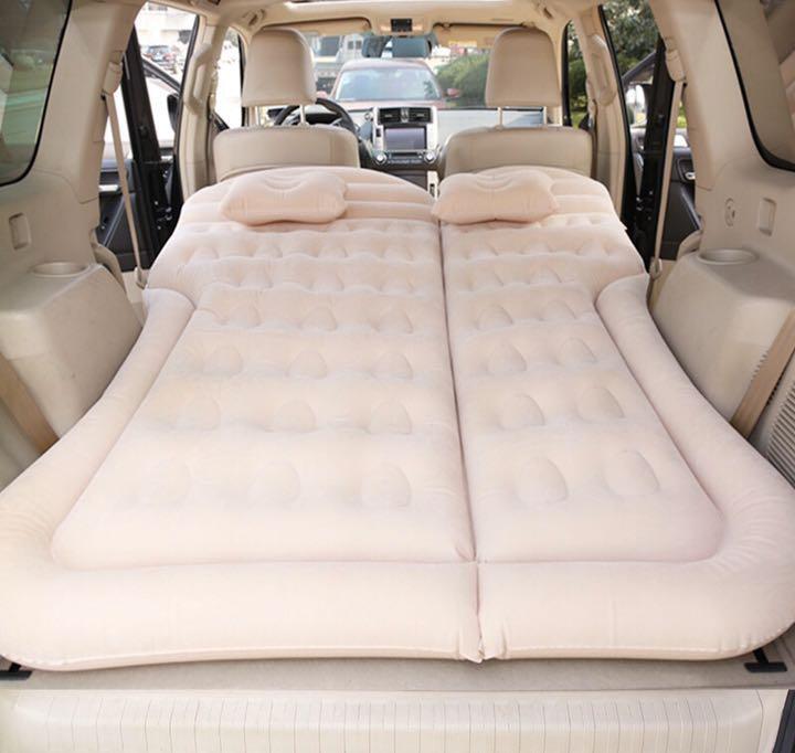 - 車中泊ベッド 車中泊マット エアーマット 車載 電動ポンプ付き 枕付き 後部座席用 エアーベッド SUV MPV 車 ベッドキット ベージュ
