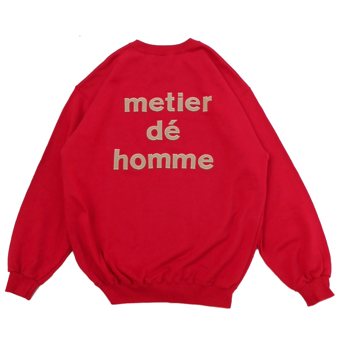 - 美品 '90s metier de homme 長袖 スウェットシャツ F レッドxベージュ L 赤 Vintage ロゴ刺繍パッチ 日本製 ヴィンテージ トレーナー オム