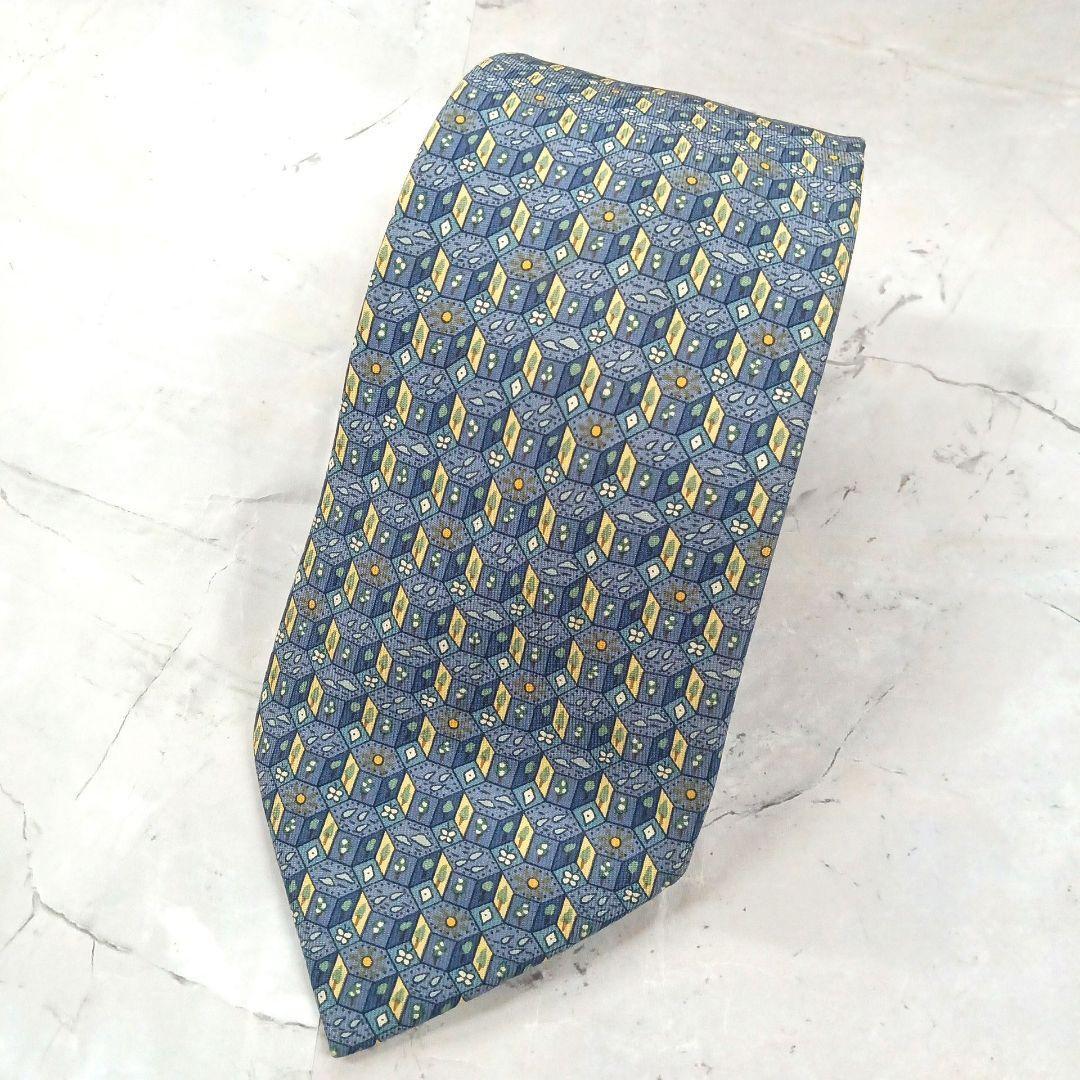 - エルメス ネクタイ 青基調 幾何学模様 ビジネス パーティー【n939】