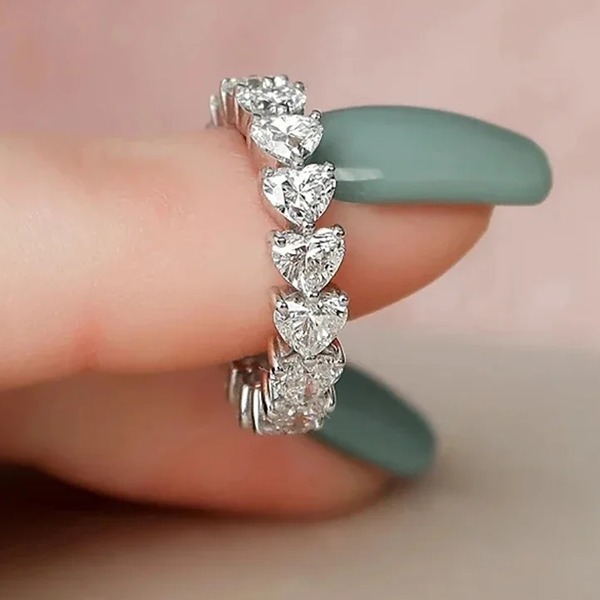 3mm ハートカット モアッサナイト ダイヤモンド エタニティ バンド、GRA証明書付き、925 シルバー、Full Moissanite、 愛の約束、結婚指輪、女性用