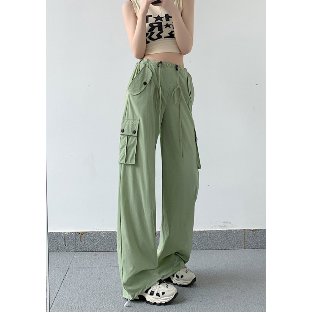 > ☆ ライトグリーン×ロング ☆ Sサイズ ☆ カーゴパンツ kpants406 カーゴパンツ レディース ゆったり ワイドパンツ 長ズボン ズボン