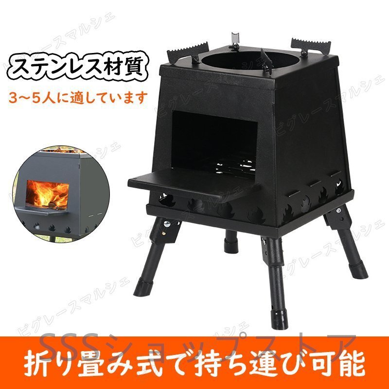 > 薪ストーブ、折りたたみ式、効率的、3~5人用、組み立て簡単、軽量、ハイキング、ピクニック、キャンプ用ストーブ
