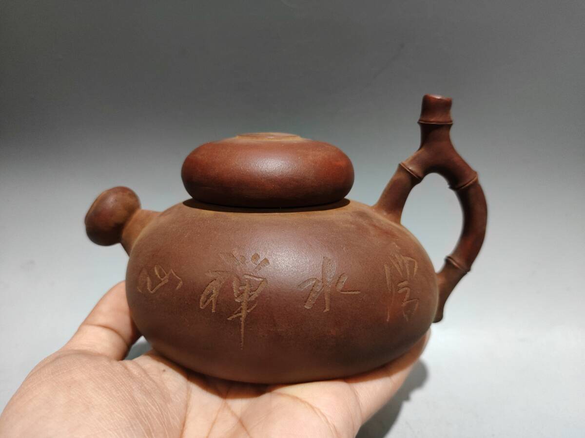 - 【蔵友館蔵品・紫砂壺・竹韻壺・顧景舟款・紅泥】・茶具・茶道品・希少珍品・賞物・中国古美術