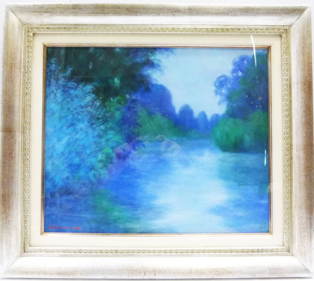 - 《ジャムルK》 kk0329-191◆◆ 宇田喜久子 「静寂」真作 油彩画 6号 額装 シルバー系額