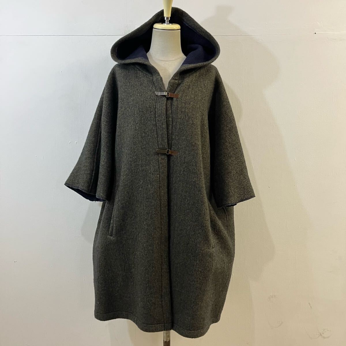 - pietro grande 極上 イタリア製 ポンチョコート ウールコート フード フックボタン ラグランスリーブ 半袖コート【送料一律/同梱可能】U