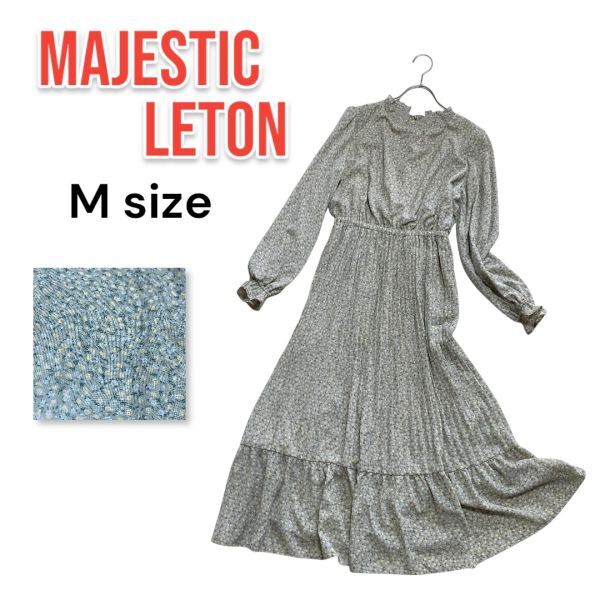 > MAJESTIC LEGON マジェスティックレゴン 花柄 ワンピース Mサイズ グレー系 ふんわり リボン レディース