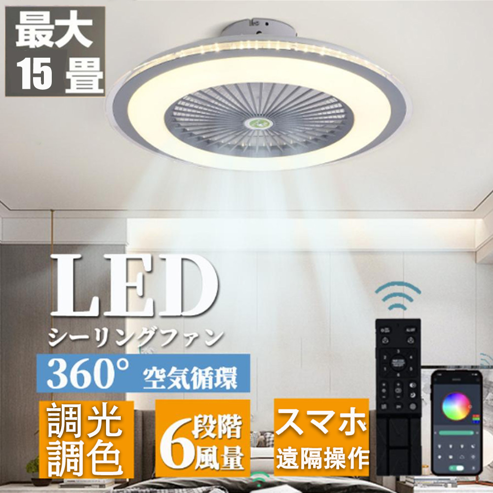 - シーリングファン シーリングファンライト led 6 8 12畳 調光調色 ファン付き照明 天井照明 扇風機 サーキュレーター リビング 脱衣場 新品
