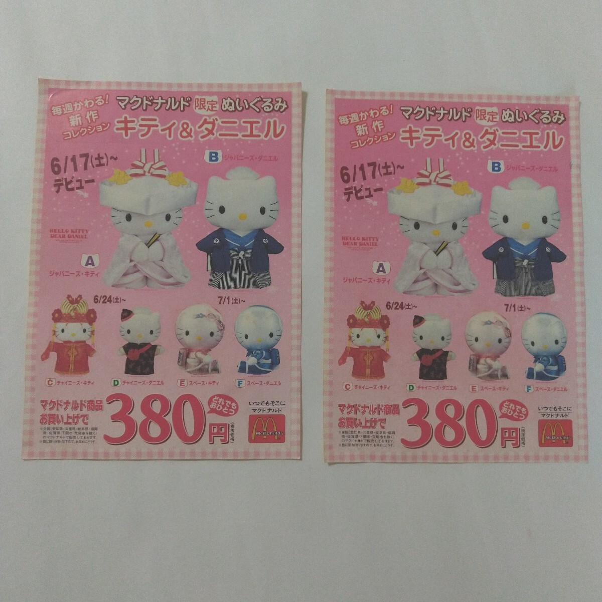 > ☆ハローキティ ダニエル マクドナルド シール 2枚 ステッカー 2000年 コラボ 限定 長期保管品 非売品 送料無料☆