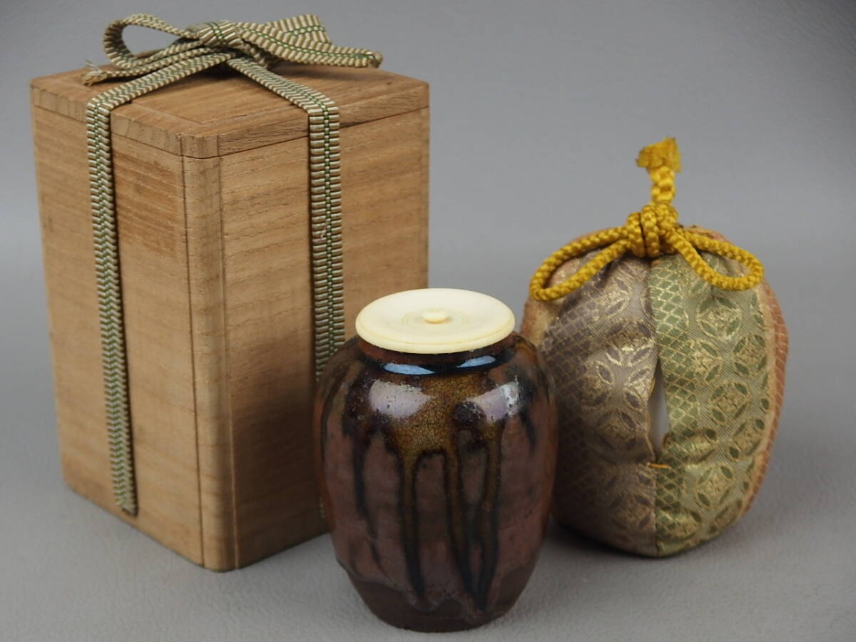 - 【骨董・茶道具】★古い 瀬戸焼 古瀬戸★★天目釉茶入 gi023wb21.7