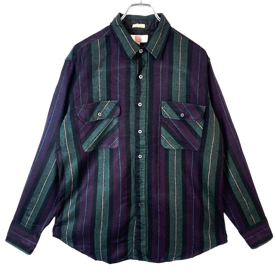 - B.O.G TRADING長袖シャツストライプアクリル緑グリーン紫パープル黒ブラック白ホワイトvintageヴィンテージ41221