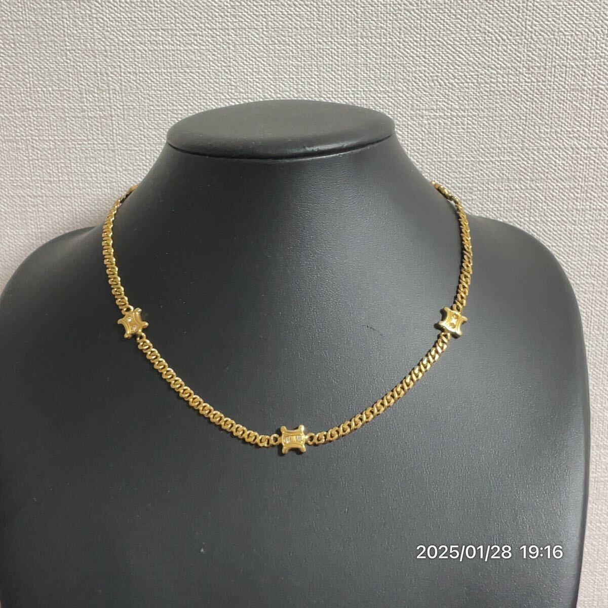 - CELINE セリーヌ マカダム トリオンフ ラインストーン ゴールドカラー ネックレス アクセサリー 装飾品
