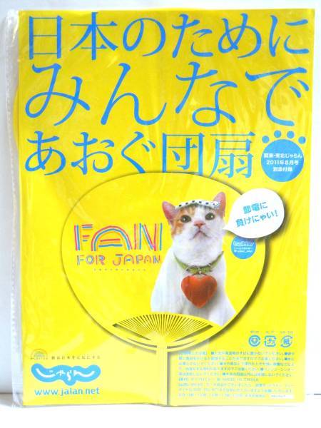 > 【新品!!】 にゃらん うちわ 2011年 じゃらん 付録 ねこ ネコ 猫 黄色 イエロー 日本のためにみんなであおぐ 団扇 I LOVE JAPAN