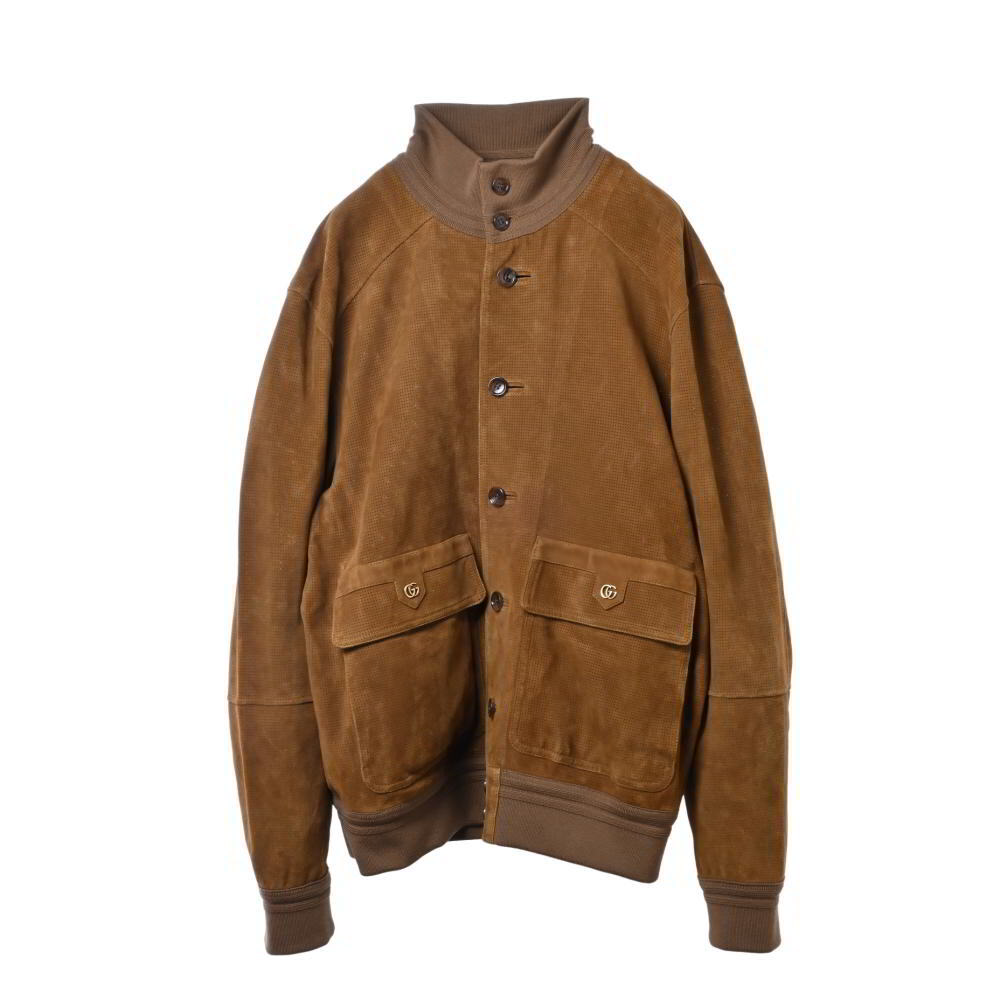 - 美品 GUCCI ラムレザー パンチング スエードジャケット 52 ブラウン グッチ KL4BSLKB76