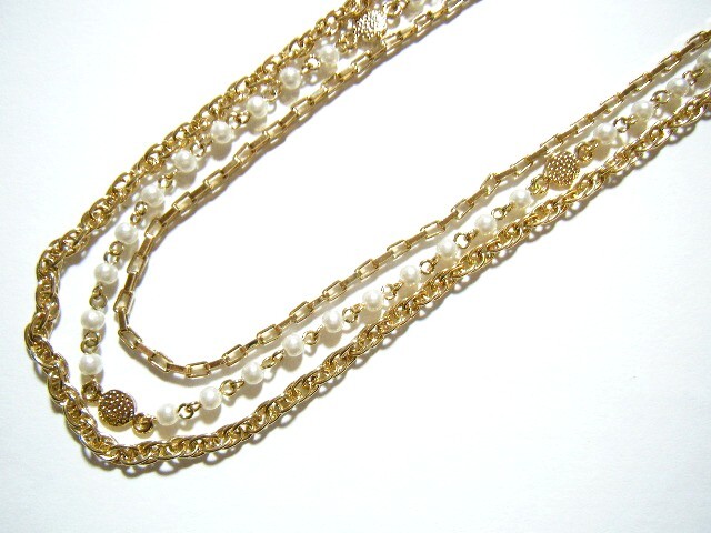 - ★3連 ロング ネックレス ゴールドカラー パールビーズ【CK11】