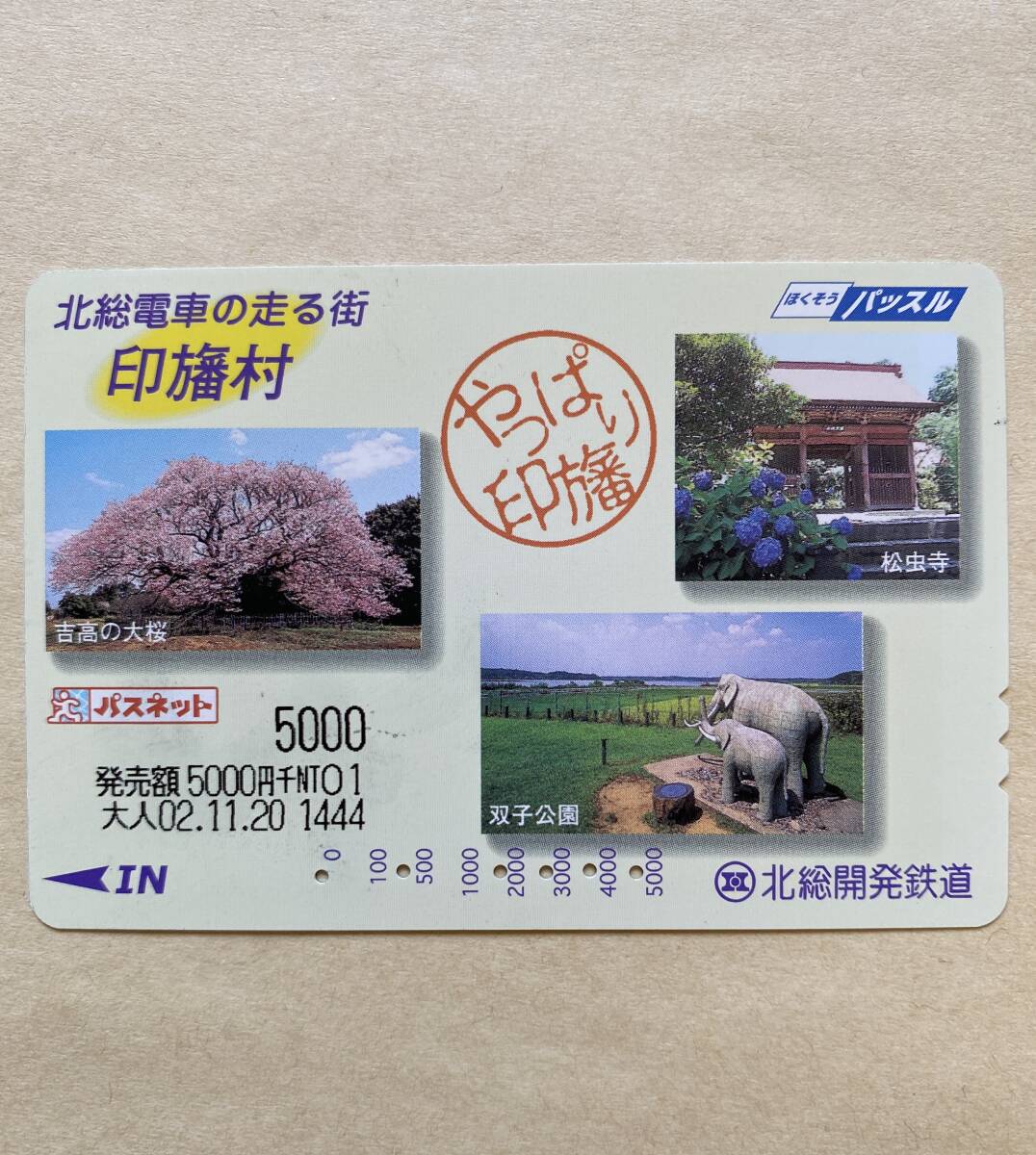 - 【使用済】 パスネット 北総鉄道 北総電車の走る街 印旛村 吉高の大桜 松虫寺 双子公園