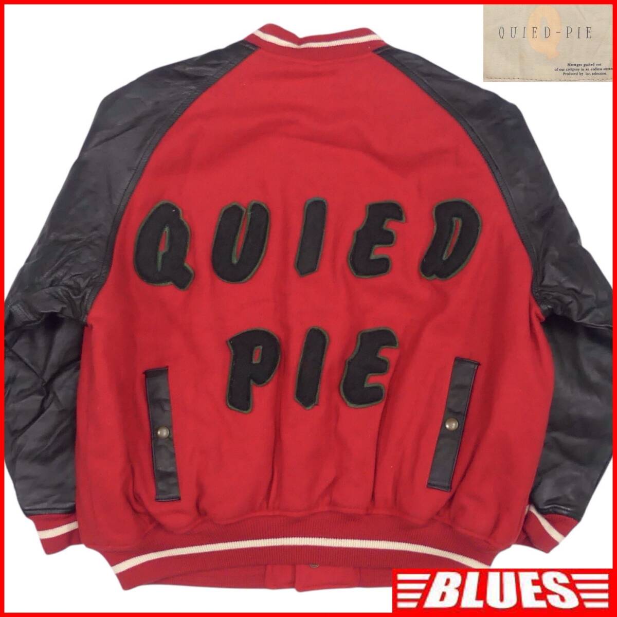> 即決★QUIED PIE★メンズ L レザーアームスタジャン クワイエッドパイ 黒 赤 本革 ブルゾン 本皮 ジャンパー 革ジャン