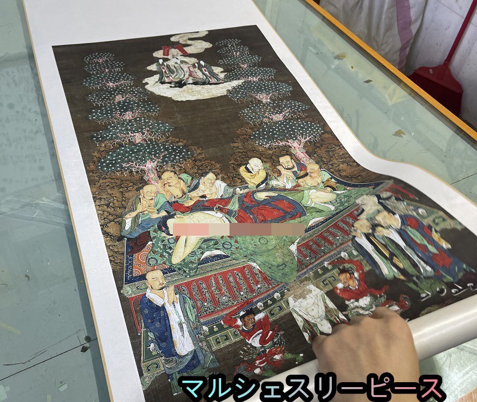 - 仏像 阿弥陀仏 釈迦牟尼仏涅槃図 縦幅 釈迦 絹布 絹本 東洋画 仏教美術 中堂画 掛け物 未表装Y38092
