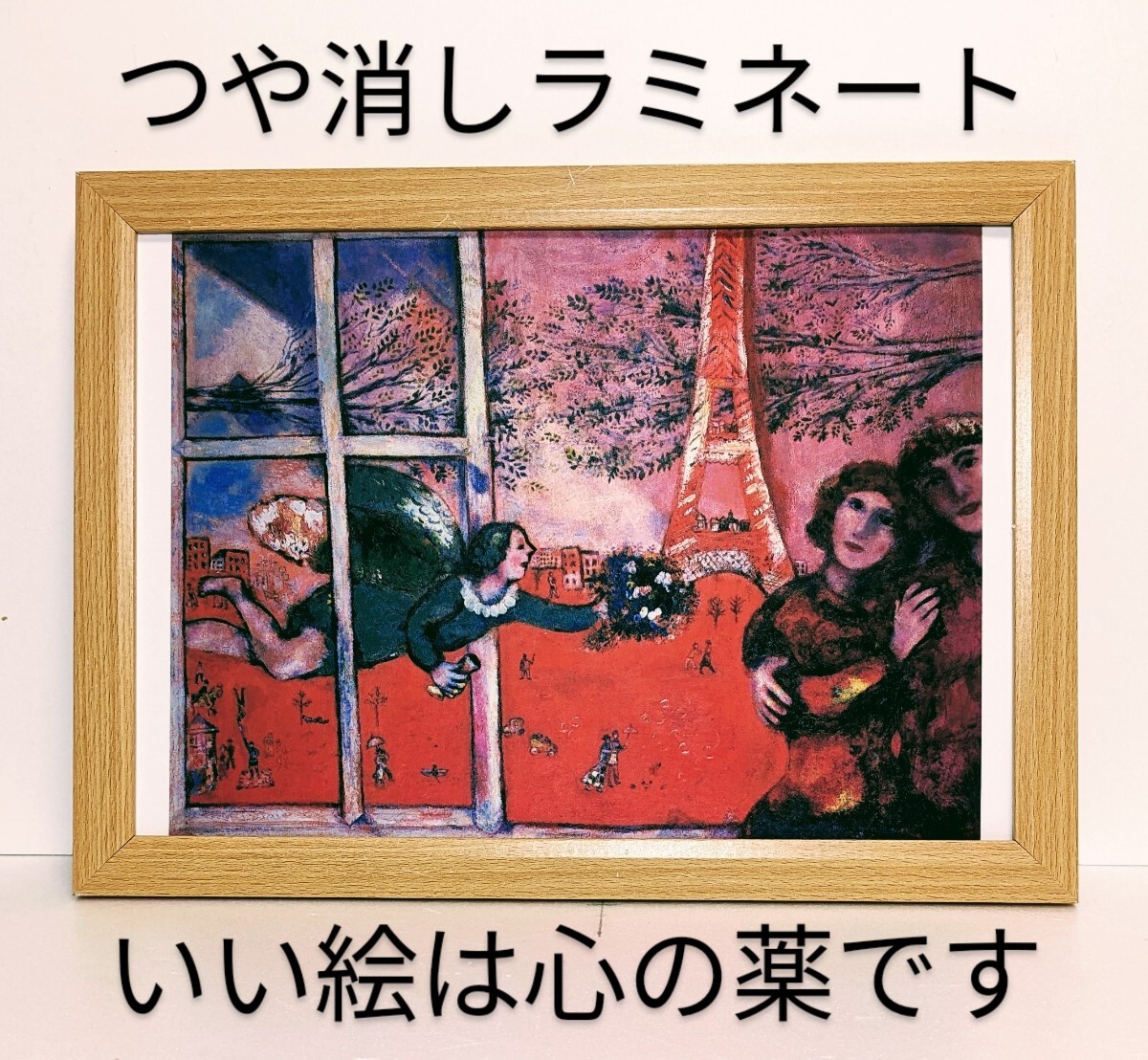 - シャガール( エッフェル塔の若い夫婦 ) 新品A4額装 つや消しラミネート加工