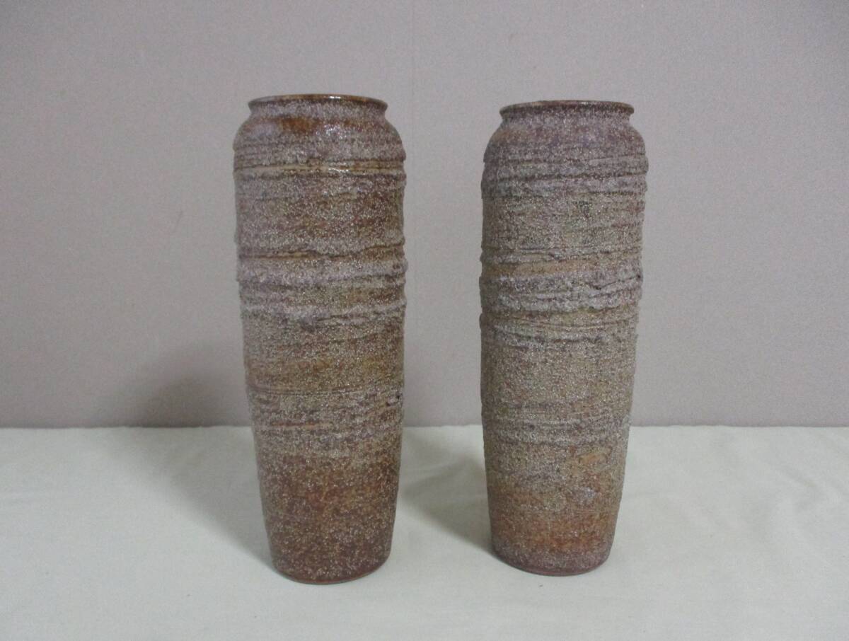- 細長い陶器の花瓶 2個セット(茶色): 茶道・華道・生け花・陶芸・美術工芸品・置物・花瓶・花器