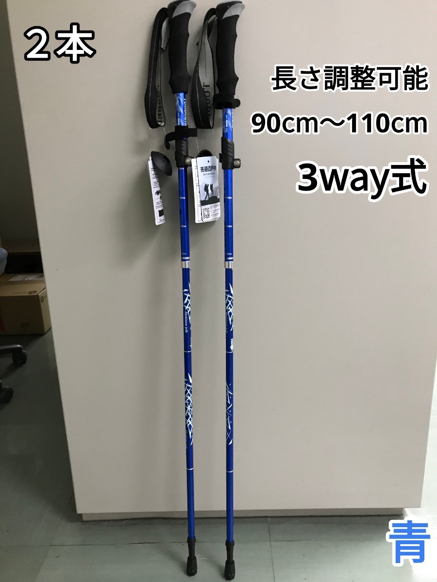 - 残りわずか 新品 2本セット 3way 登山 ウォーキング 軽量 トレッキングポール ストック 青 アルミ製 調整可能 即購入OK 【※値下げ不可】