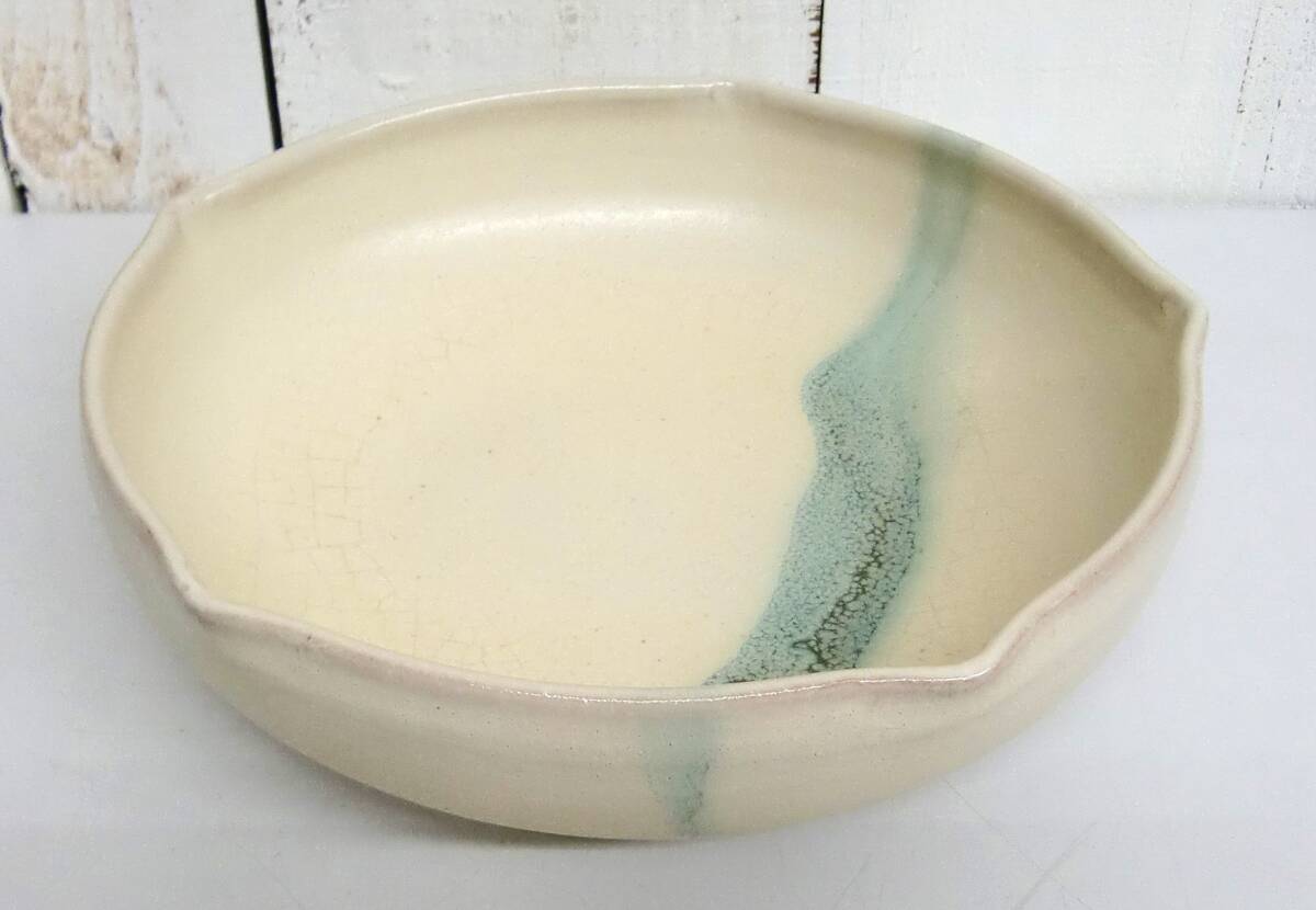 > *伝統工芸 工芸品 工芸美術 *馬追焼 *器 大鉢 菓子鉢 丸型*直径 24.5cm *北海道陶器 *共箱付き