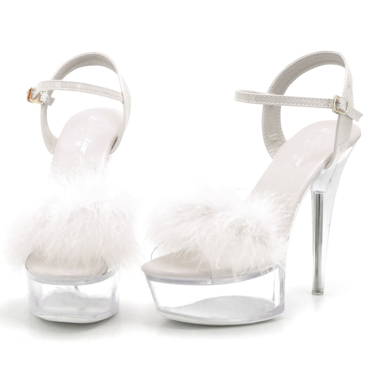 - 新品 大きいサイズ サンダル ホワイト 26cm 132310-42 ファー付き クリアーソール 前厚底ストーム ハイヒール