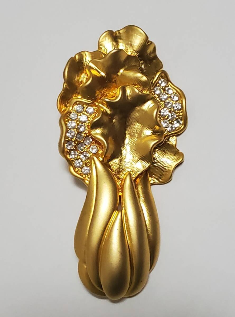 - 存在感抜群 ラインストーン ブローチ ゴールドカラー レディース ブランドアクセサリー 24,4g 美品