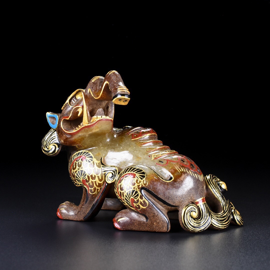 - ▽鴻▽ 和田玉製 細密彫 玉獣 置物 古賞物 中国古玩 中国古美術