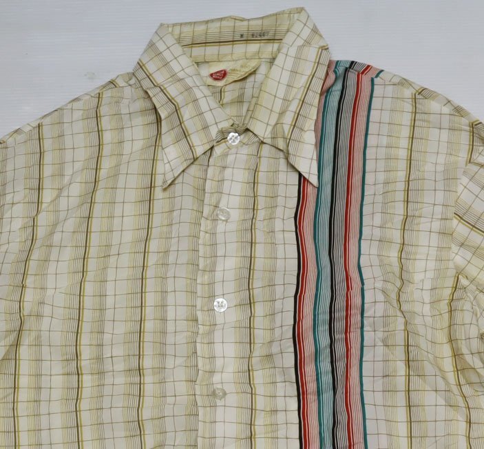 - LS72キングスロードKINGS ROADシアーズSEARSアメリカ古着ポリエステルシャン70’S80’Sビンテージ長袖シャツ襟芯入ボックスシャツMオールド
