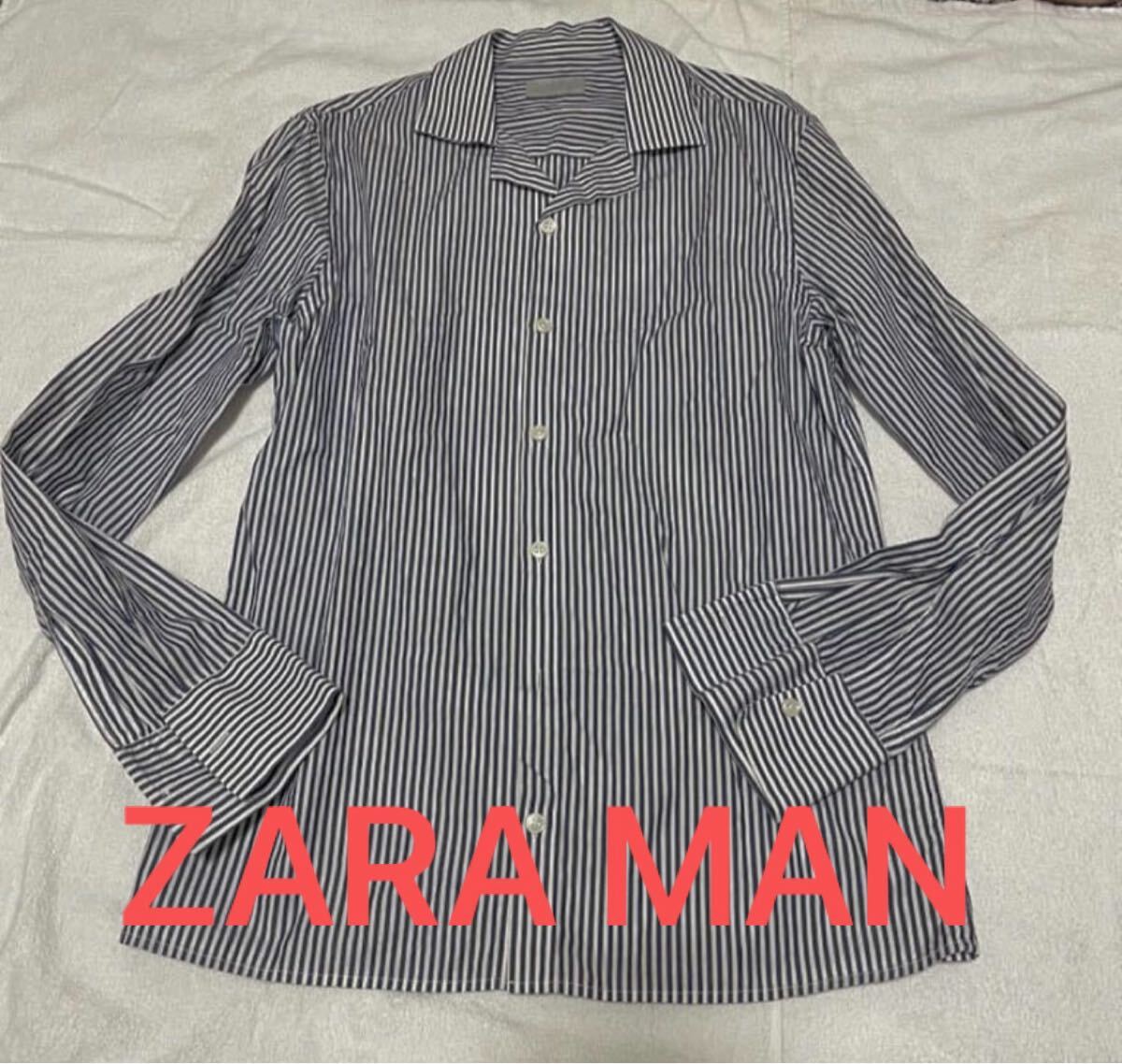 - 美品!ZARA MAN ザラマン ストライプ 青 白 メンズ シャツ 長袖シャツ ストライプ ボタンダウン
