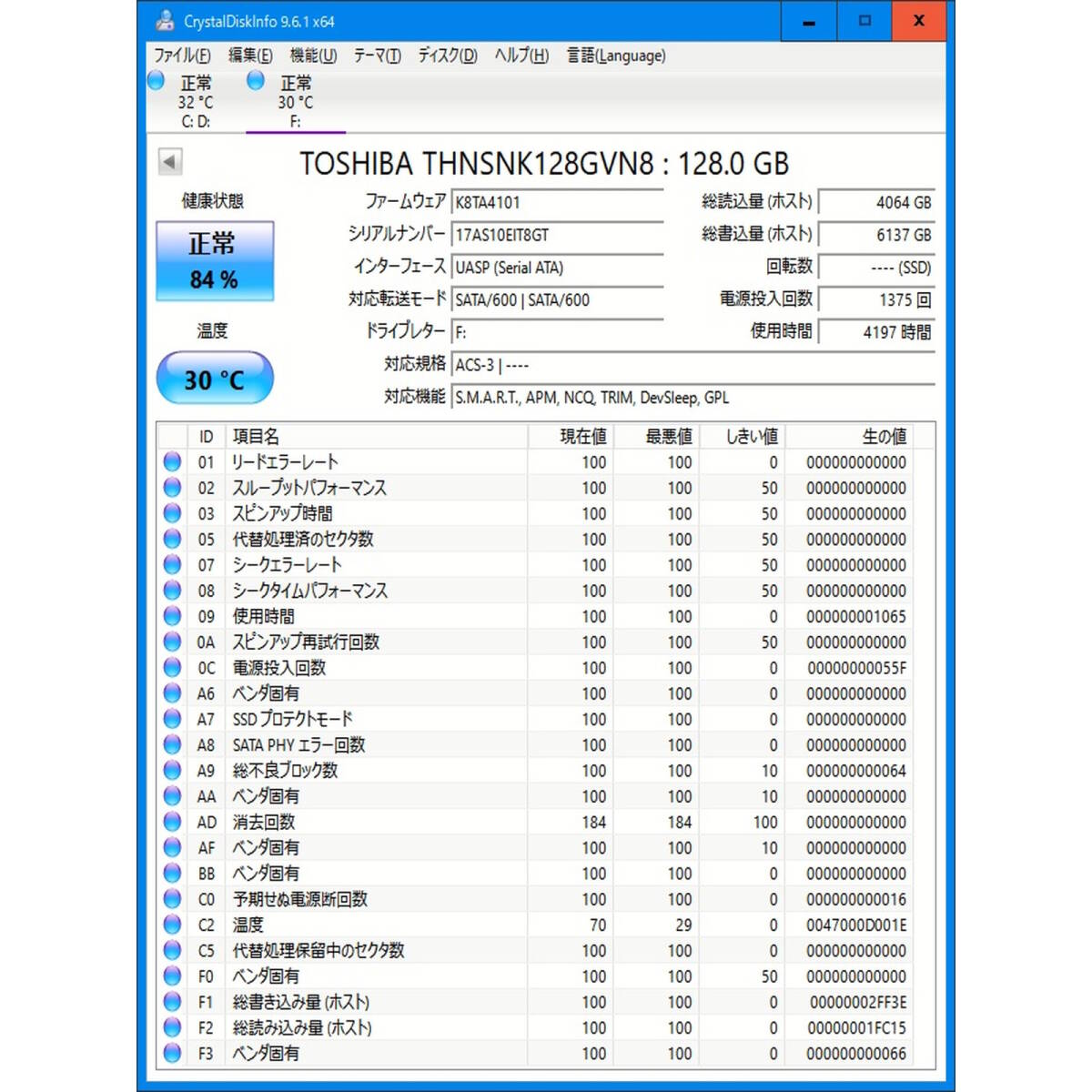 - SSD 128GB M.2 SATA CrystalDiskInfo正常確認 (5033002