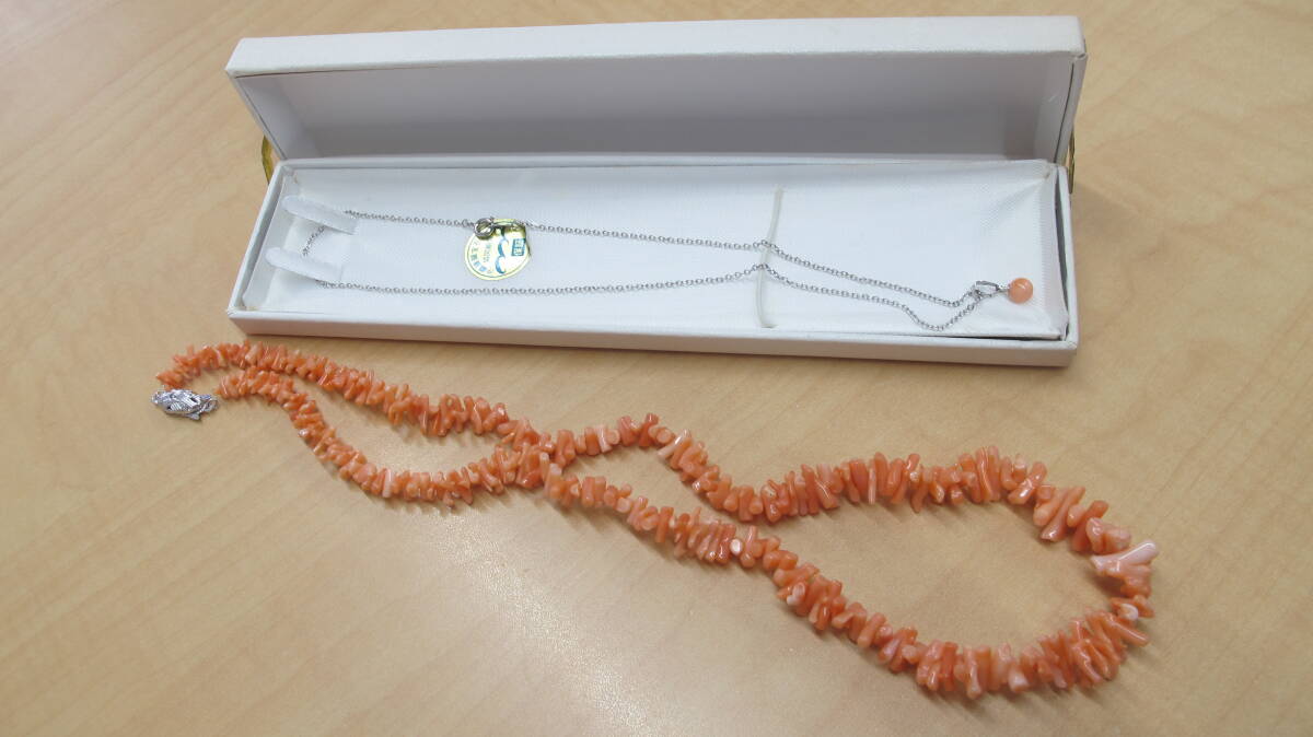 > ■□珊瑚 ネックレス ピンク珊瑚 coral 沖縄 pink サンゴ GSILVER 2個セット□■