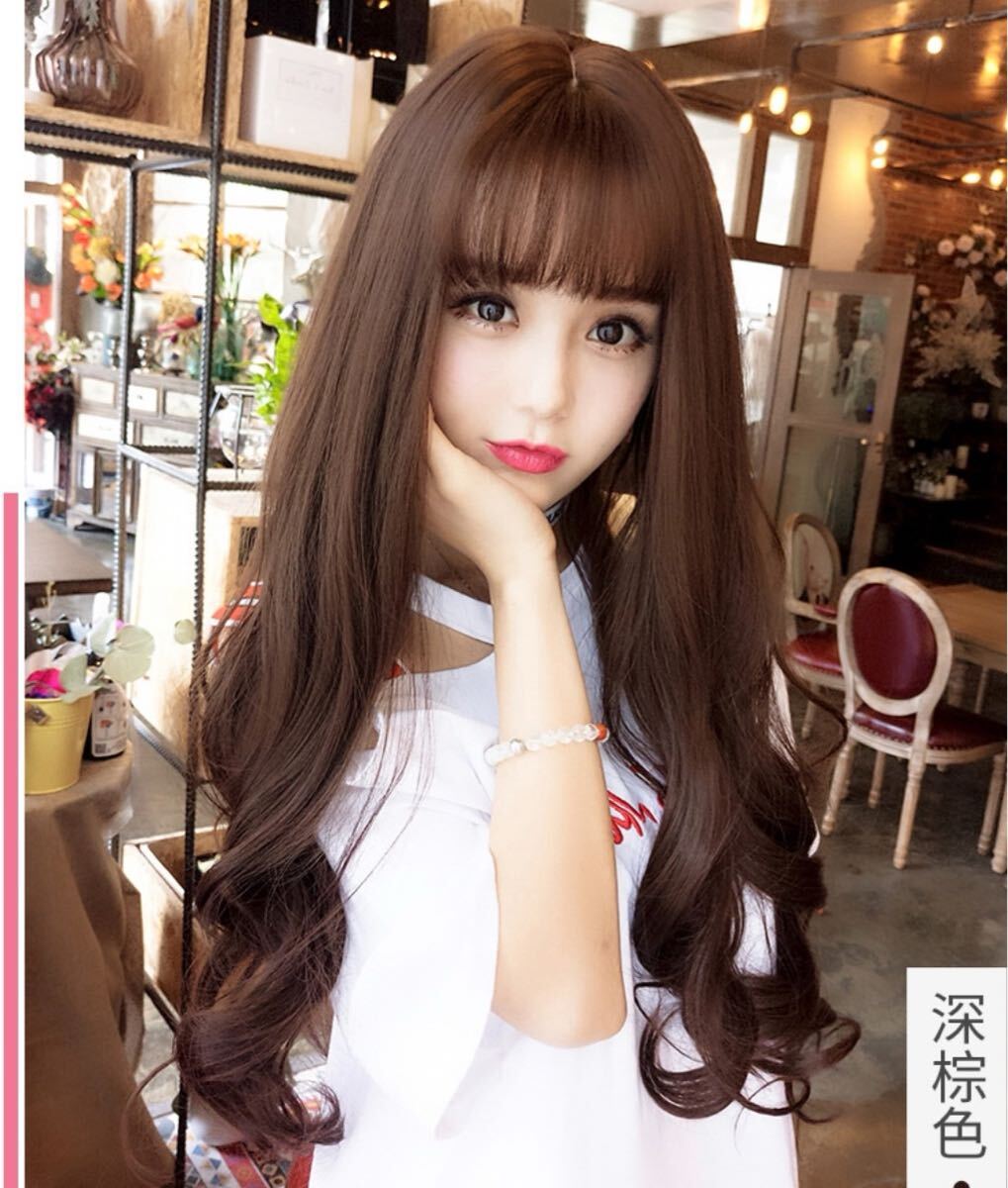 - ロングウェーブ ウィッグ フルウィッグ 可愛い かつら コスプレ 明るめブラウン 自然 小顔