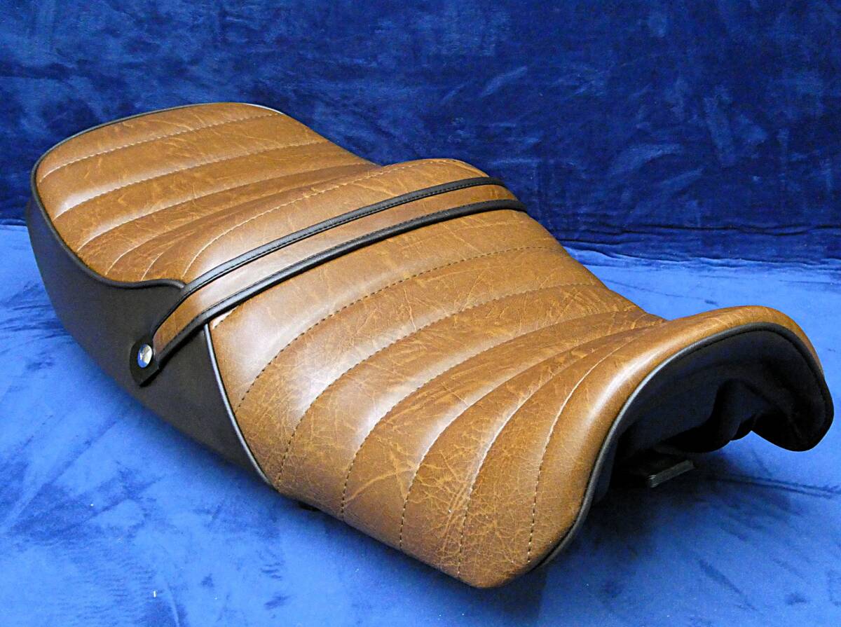 > XJR400 後期 茶皮 タックロールシート/段シート 黒RH02Jブラウン レザーXJR400Rリベット4HM9ダブル アンコ抜き ローダウンシート