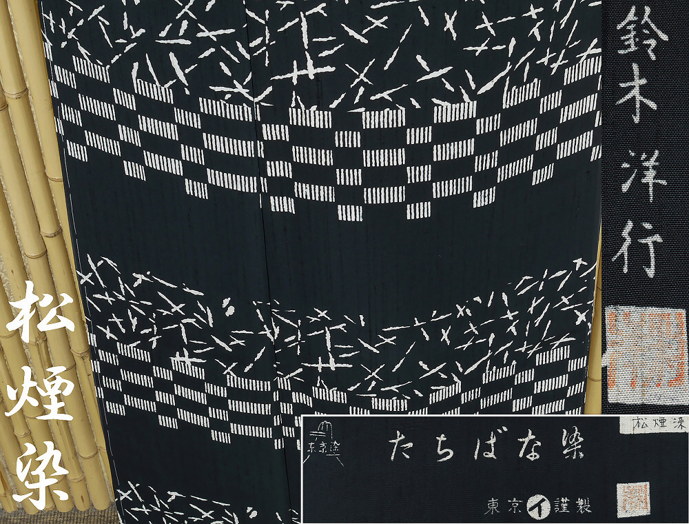 - 【京かんざし】985★工芸染色士 鈴木洋行 たちばな染 松煙染 躾糸付未着用身丈160 cm裄丈67 cm袖丈47 cm★即決送料無料!