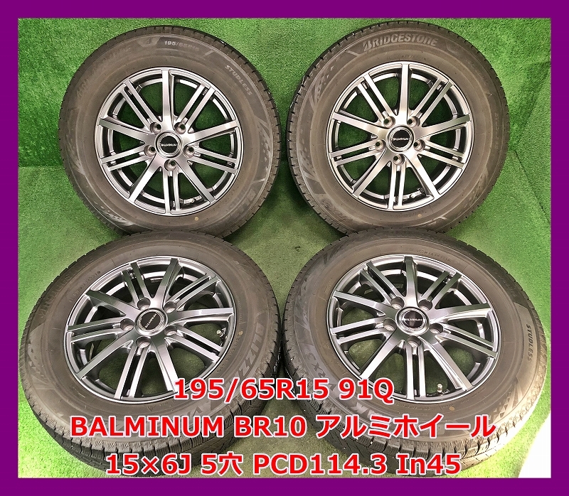 > 2021年製 195/65R15 91Q ブリヂストン VRX3 中古 スタッドレス/中古 BALMINUM BR10 アルミホイール付き 4本 5穴 PCD:114.3 IN45