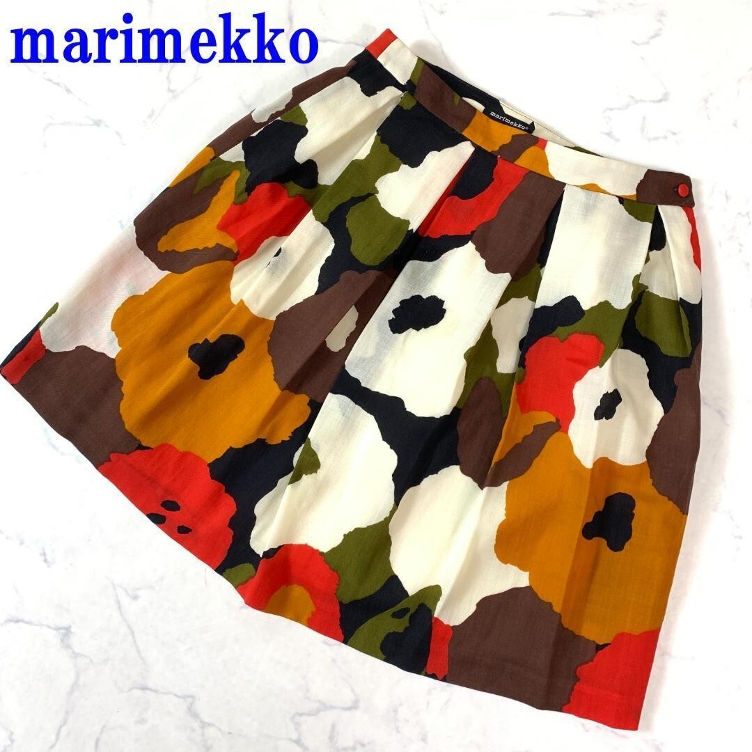 - マリメッコ スカート 赤 ベージュ 花柄 ウール100% marimekko 34 C2474