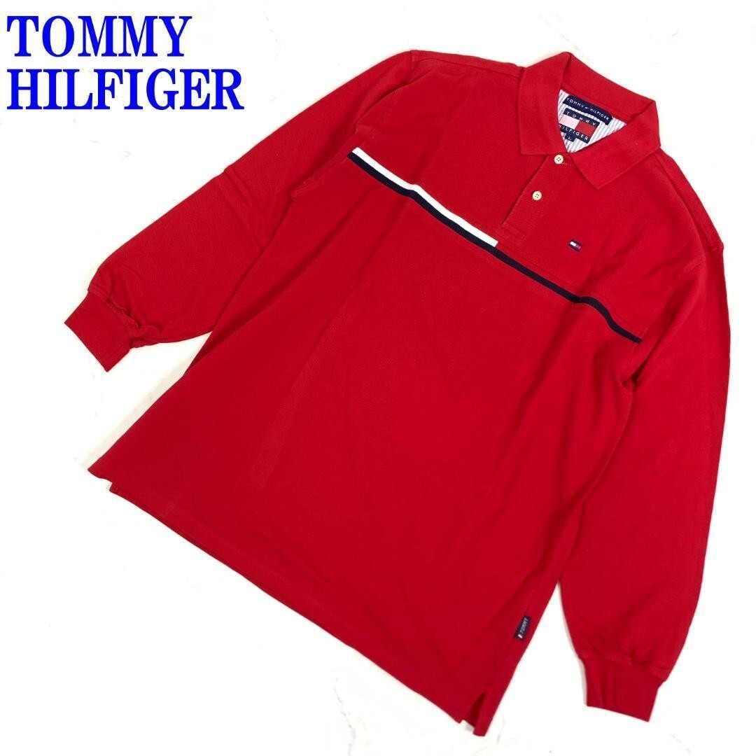 - トミーヒルフィガー 長袖ポロシャツ 赤 コットンTOMMY HILFIGER レッド 100% L C2505