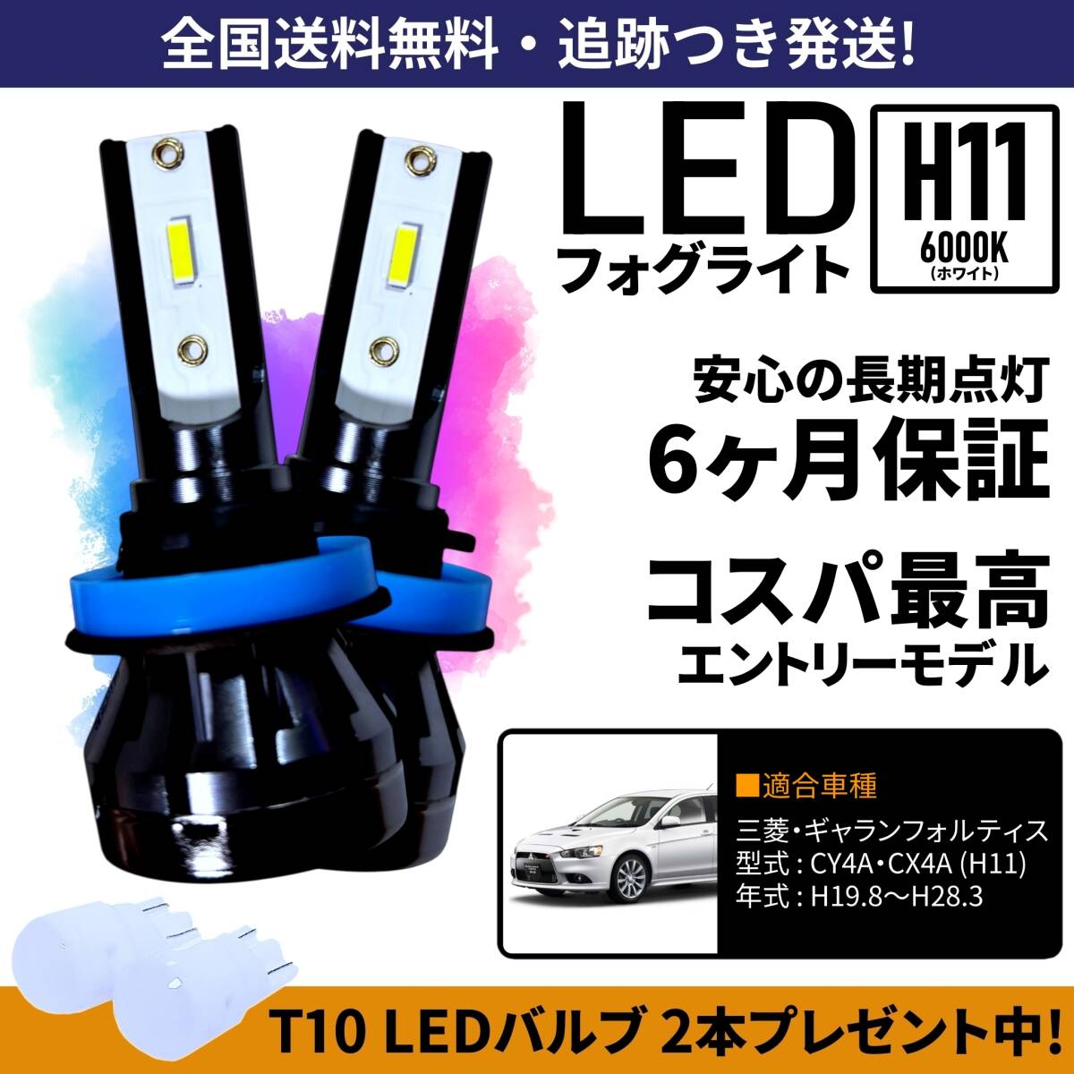 > 【送料無料】三菱 ギャランフォルティス CY4A CX4A LED フォグライト フォグランプ H11 ホワイト 6000K 保証付き