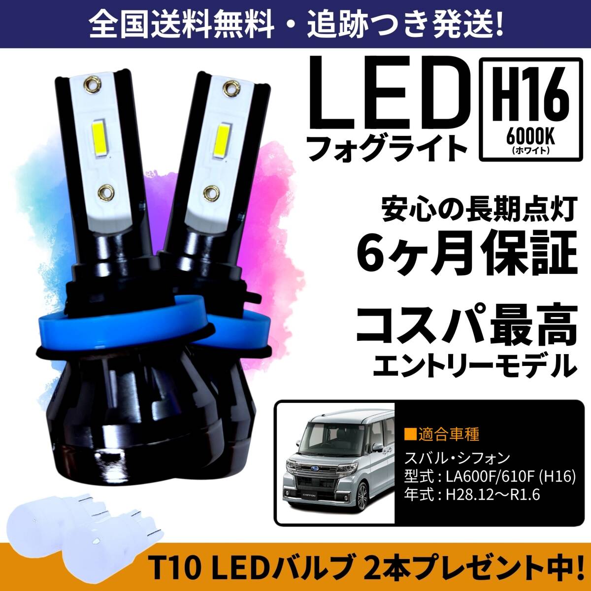 > 【送料無料】スバル シフォン LA600F LA610F LED フォグライト フォグランプ H16 ホワイト 6000K 保証付き