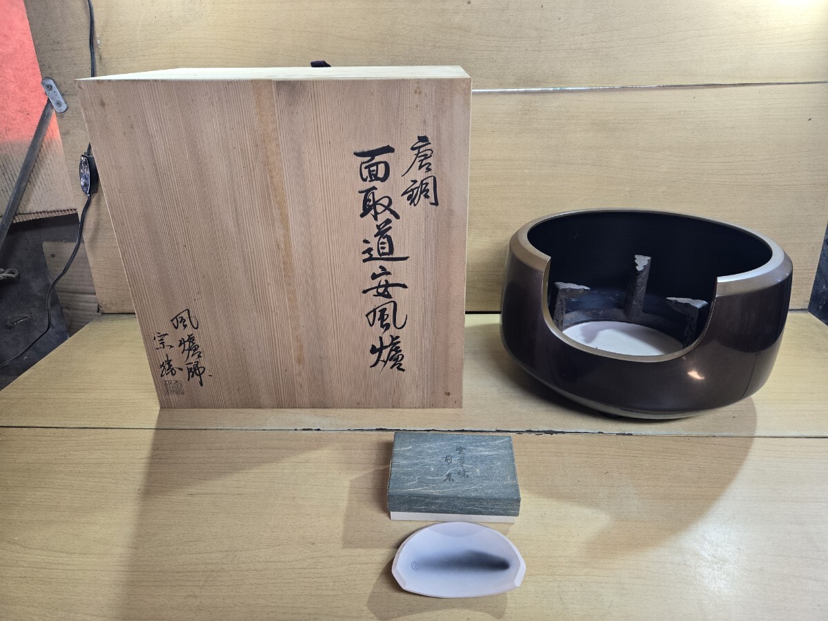 - 【S】 茶道具 面取風炉 五徳 敷台 真鍮製
