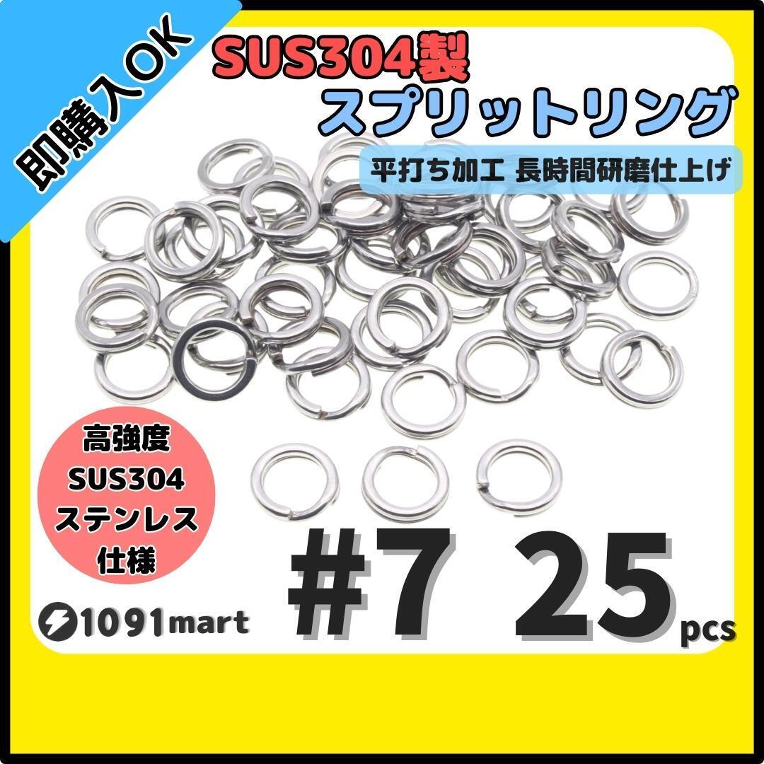 - 【送料150円】最強素材! SUS304 ステンレス製 強力 平打ち スプリットリング #7 25個セット ソルト対応品 長時間研磨