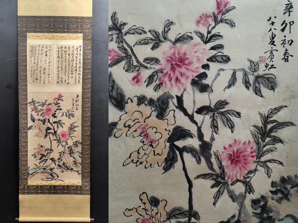 - 中国書画「黄賓虹 花卉図」肉筆紙本 掛け軸 墨寶妙品 書画立軸 巻き物 古美術 旧蔵出