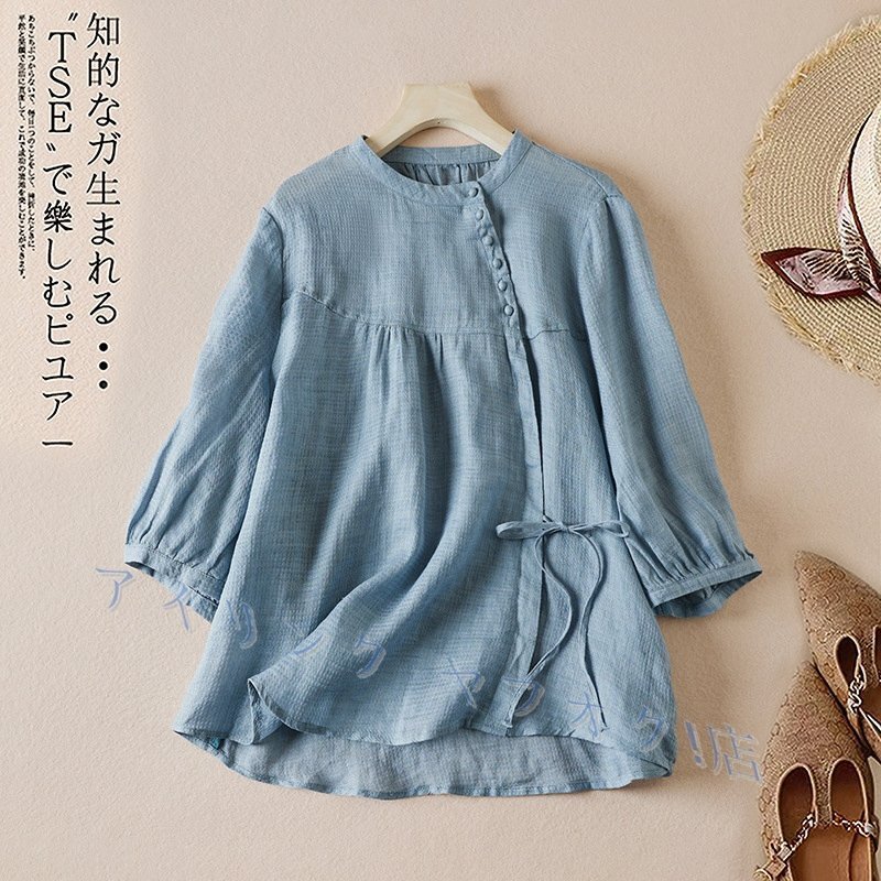 > 新品☆夏物 チュニック 長袖 チュニック レディース 七分袖 ブラウス 無地 チュニック 体型カバー 大きいサイズ ゆったり トップス ブルーL