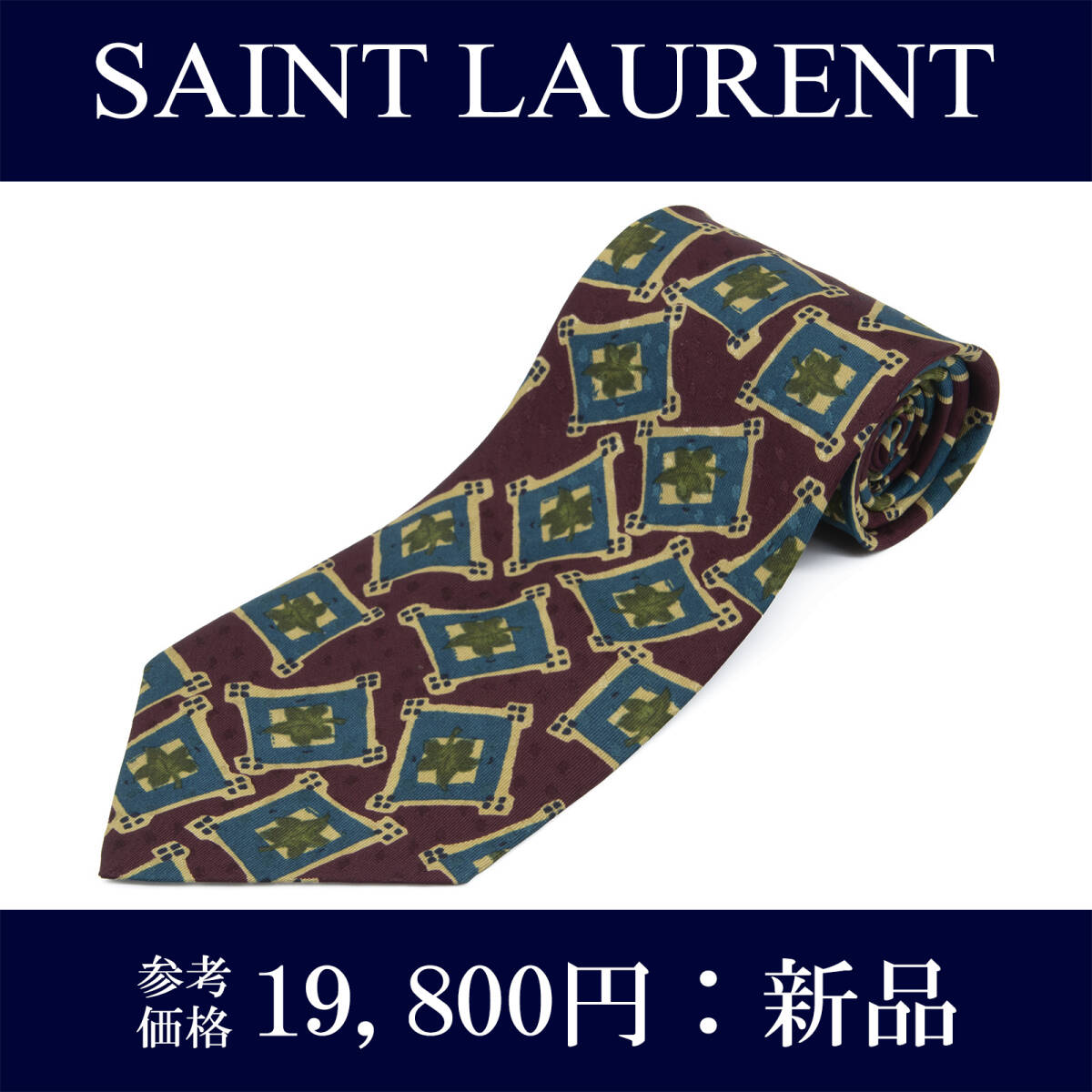 > 送料無料 サンローラン ネクタイ レギュラータイ 新品 シルク 赤 バーガンディー 青 黄緑 ブランド 人気 葉 リーフ 四角 珍しい 綺麗 N695