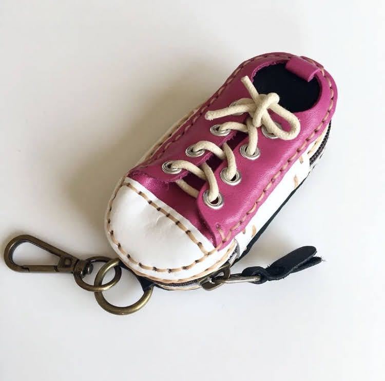 - ★送料無料★新品 本革キーケース ハンドメイド レザーキーケース スマートキーケース 鍵入れ シューズ型 ピンク